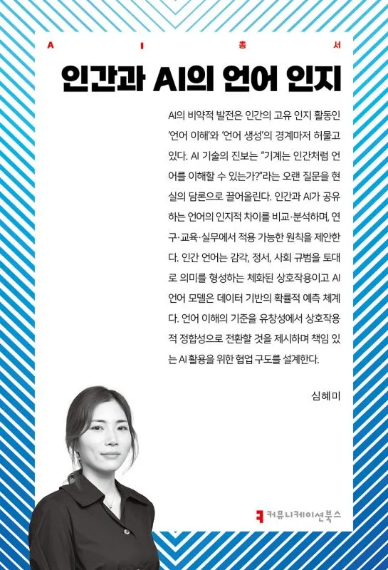 인간과 AI의 언어 인지를 인지언어학 관점에서 비교 분석하며, AI 언어 생성의 본질이 ‘이해 없는 생성’임을 밝힌다. 인간의 신체 경험·정서·사회적 맥락 기반 의미 구성과 AI의 통계적 예측 메커니즘을 대비해 양자의 근본적 차이를 규명하고, 동시에 인간ᐨAI 언어 협력이 가능한 조건을 제시하는 심층적 탐구서다.