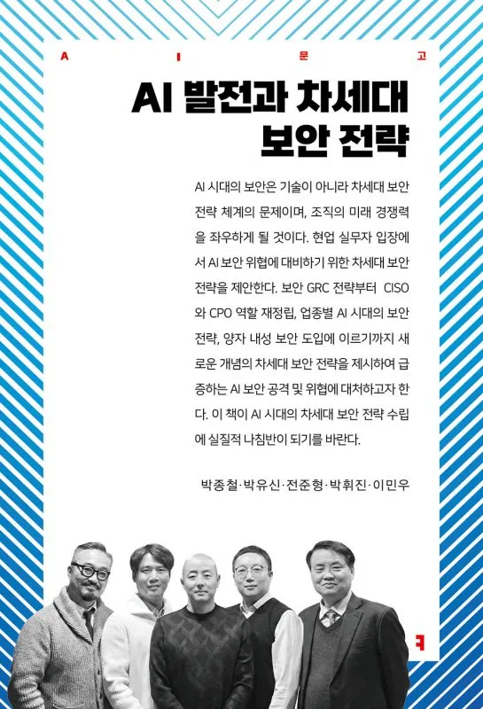 AI의 발전은 사이버 공격의 속도와 규모, 지능을 근본적으로 변화시키고 있다. 이제 보안은 기술 문제가 아니라 조직의 생존 전략이 되었다. 이 책은 AI 기반 공격 환경에서 필요한 차세대 보안 전략을 제시한다. 거버넌스, 리스크 관리, 컴플라이언스, 산업별 보안 전략과 양자 내성 암호까지 아우르며 AI 시대의 새로운 보안 패러다임을 설명한다.