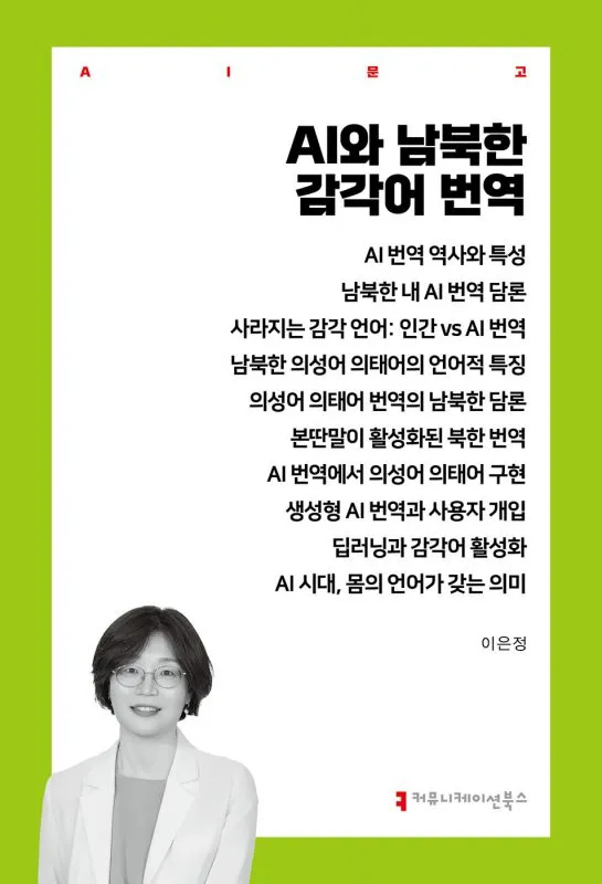 AI 시대 감각어를 다시 보다 01 AI 번역 역사와 특성 02 남북한 내 AI 번역 담론 03 사라지는 감각 언어: 인간 vs AI 번역 04 남북한 의성어 의태어의 언어적 특징 05 의성어 의태어 번역의 남북한 담론 06 본딴말이 활성화된 북한 번역 07 AI 번역에서 의성어 의태어 구현 08 생성형 AI 번역과 사용자 개입 09 딥러닝과 감각어 활성화 10 AI 시대, 몸의 언어가 갖는 의미